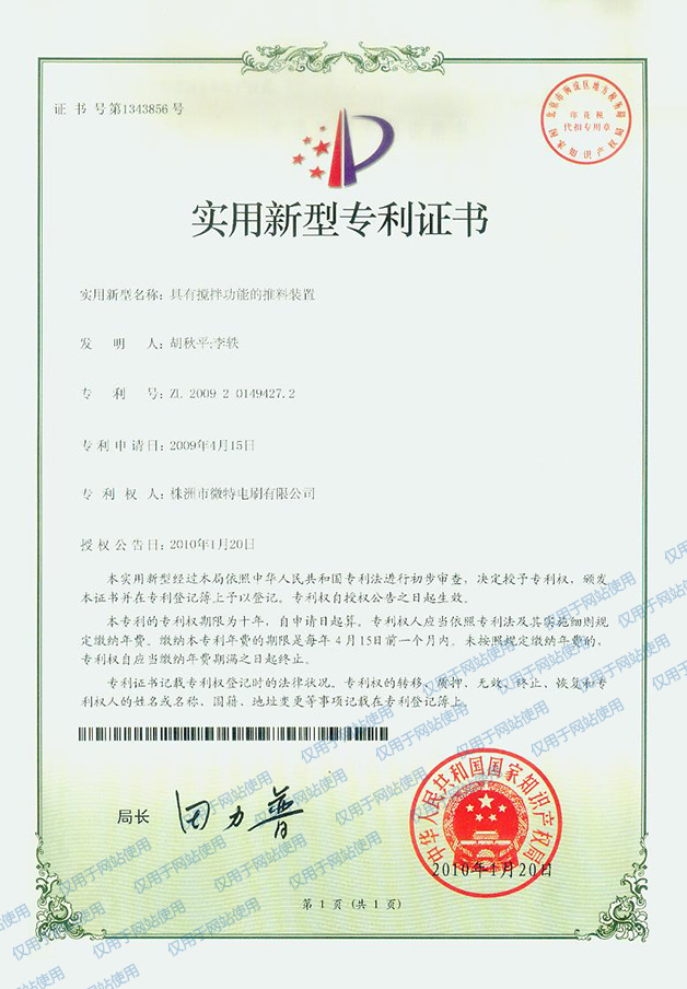 具有攪拌功能的推料裝置--2010年專利證書002