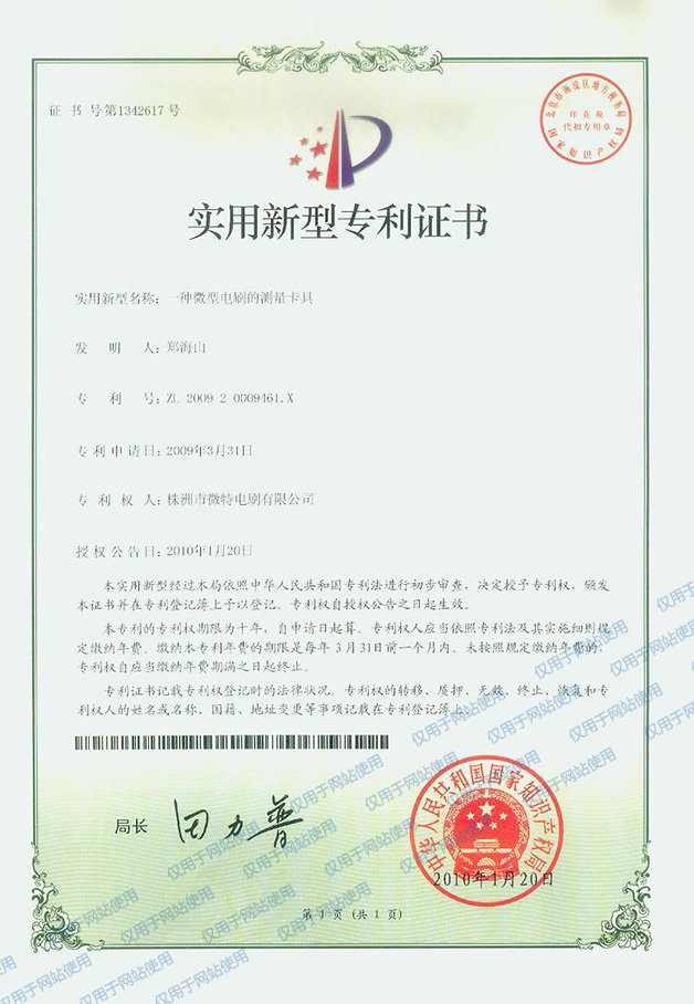 Patent Certificate of a Measuring Fixture for Mixcro Brush